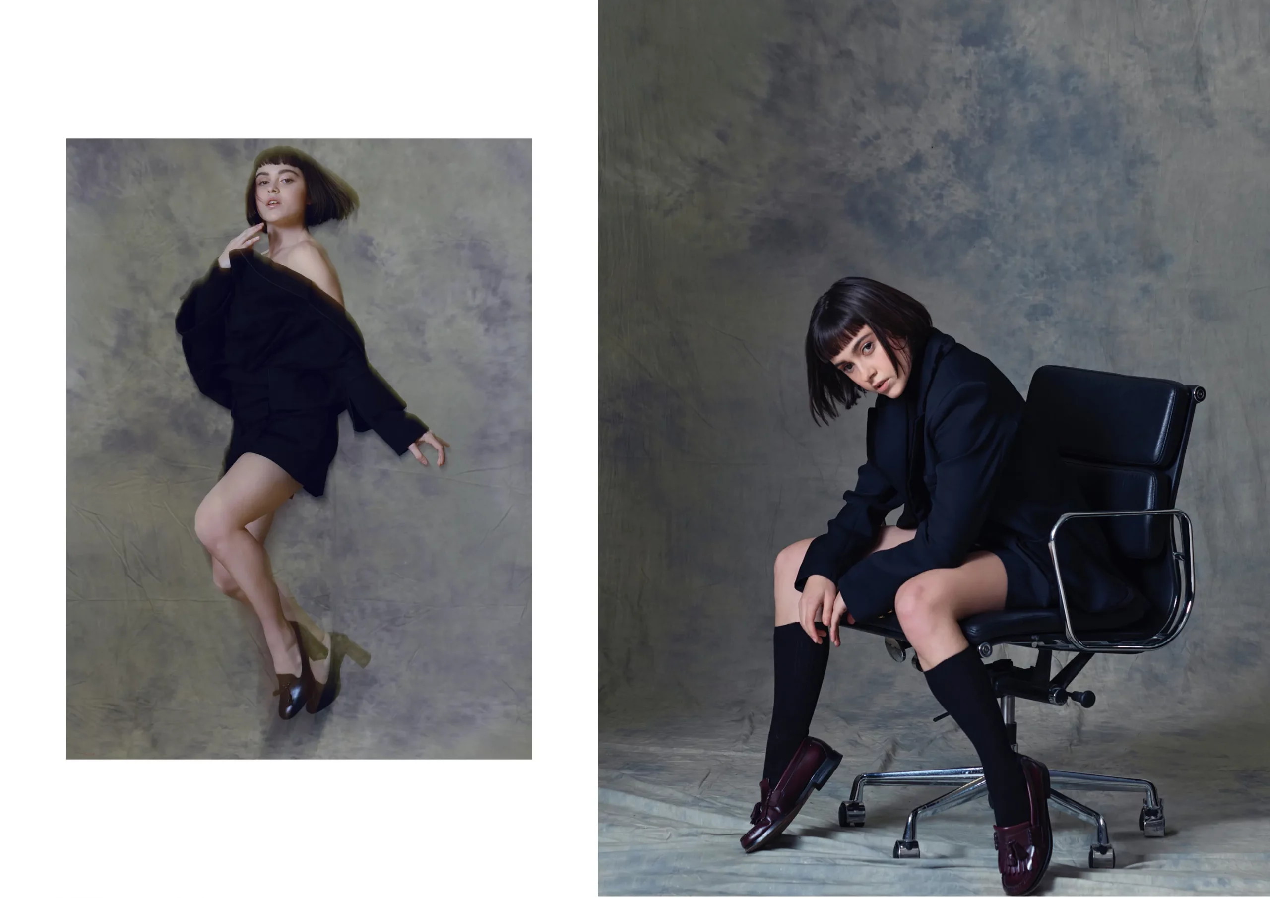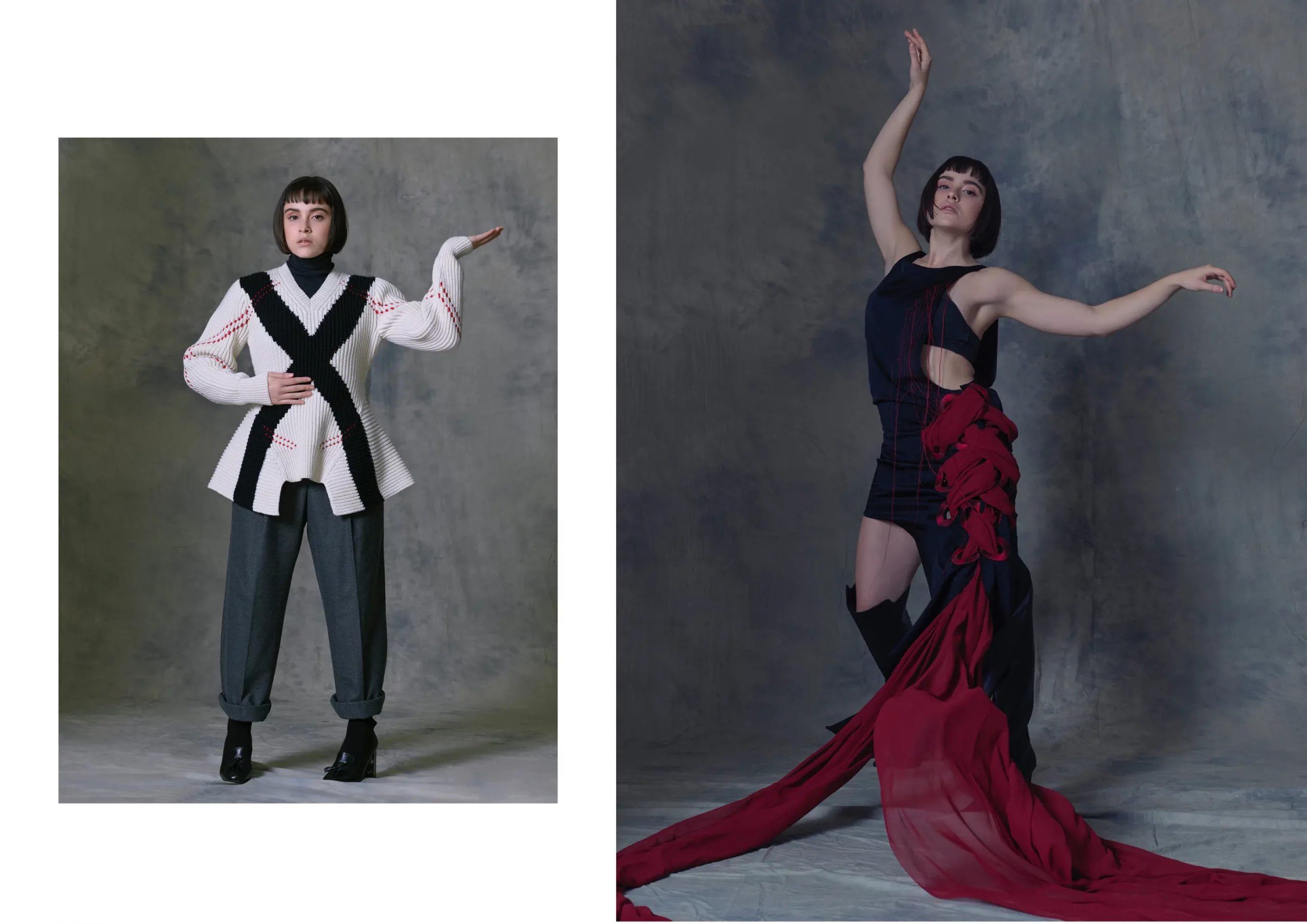 Left: Sweater: Alexander McQueen Pants: Kelsey’s Own Socks: Falke Shoes : Albano
