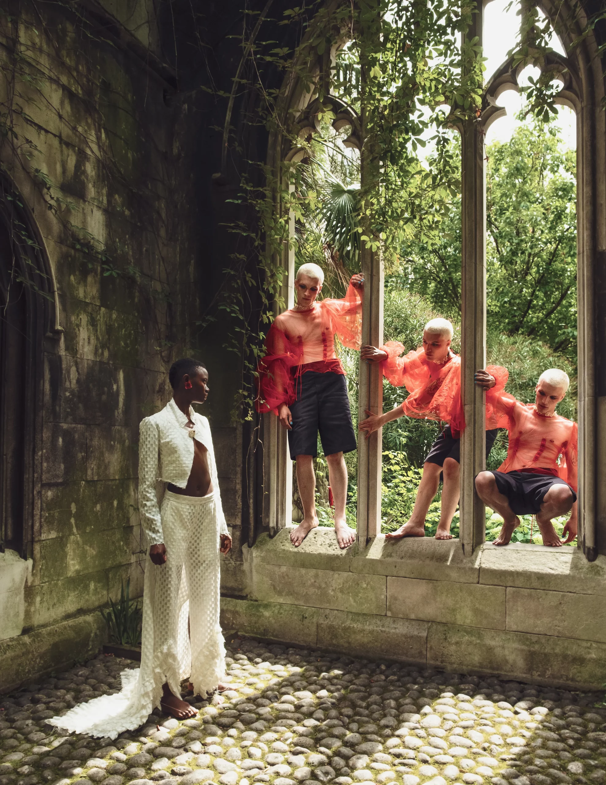 Centre: Omoh Wears: Dress: Vivenne Westwood Dress Layered: Francesca.R Palumbo Shoes: Vintage Jordan Wears: Jumper: Petja Zorec Trouser: Dhenze