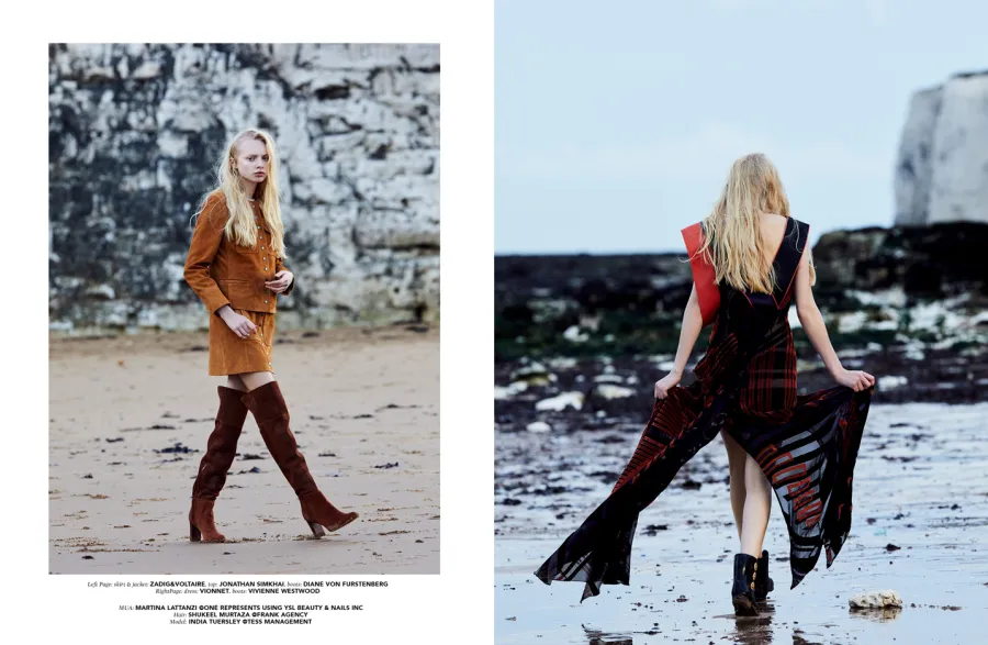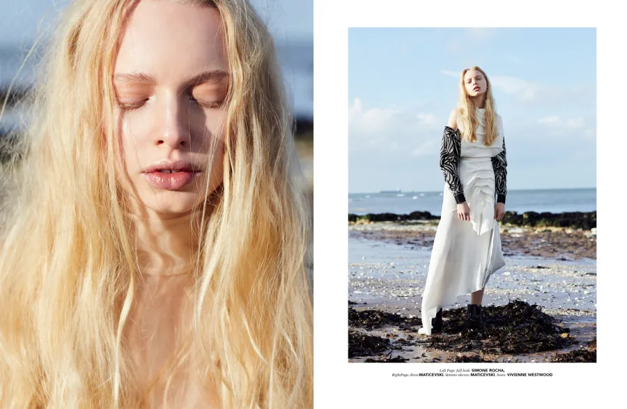 Left Page : dress: Temperley London, boots: Camilla Elfick
