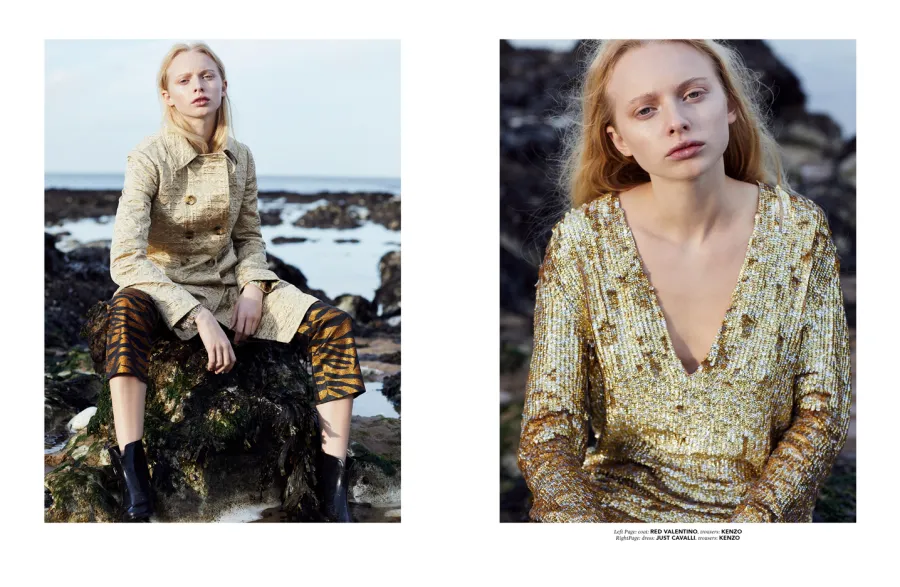 Right Page: dress: Just Cavalli, trousers: KENZO